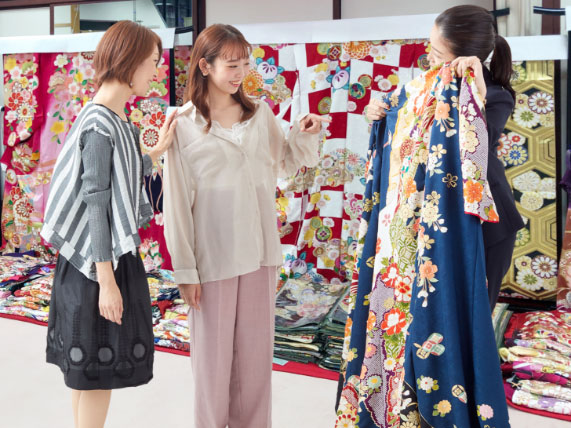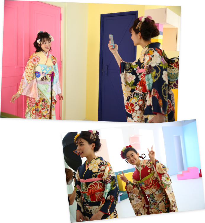 成人式の日、お嬢様が誰よりも輝き素敵に装う最高の振袖をご本人様、ご家族の皆様と一緒になって探し見つけることが私たちの使命です。こだわりのサービスで、忘れることができない成人式に彩りを添えることができるように尽力します。