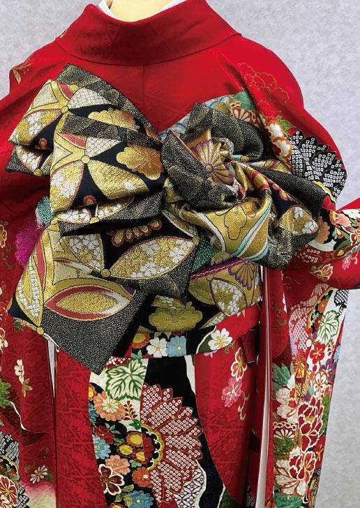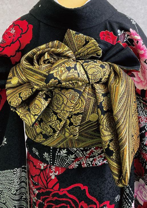 落ち着いた印象のお太鼓系は最もベーシックなアレンジです。上品でクラシカルなお太鼓系のアレンジはフォーマルなシーンにぴったり。古典柄の振袖によく合います。羽根の枚数を増やしたり、大きさを変えたり、華やかさをプラスしたアレンジも楽しめます。
