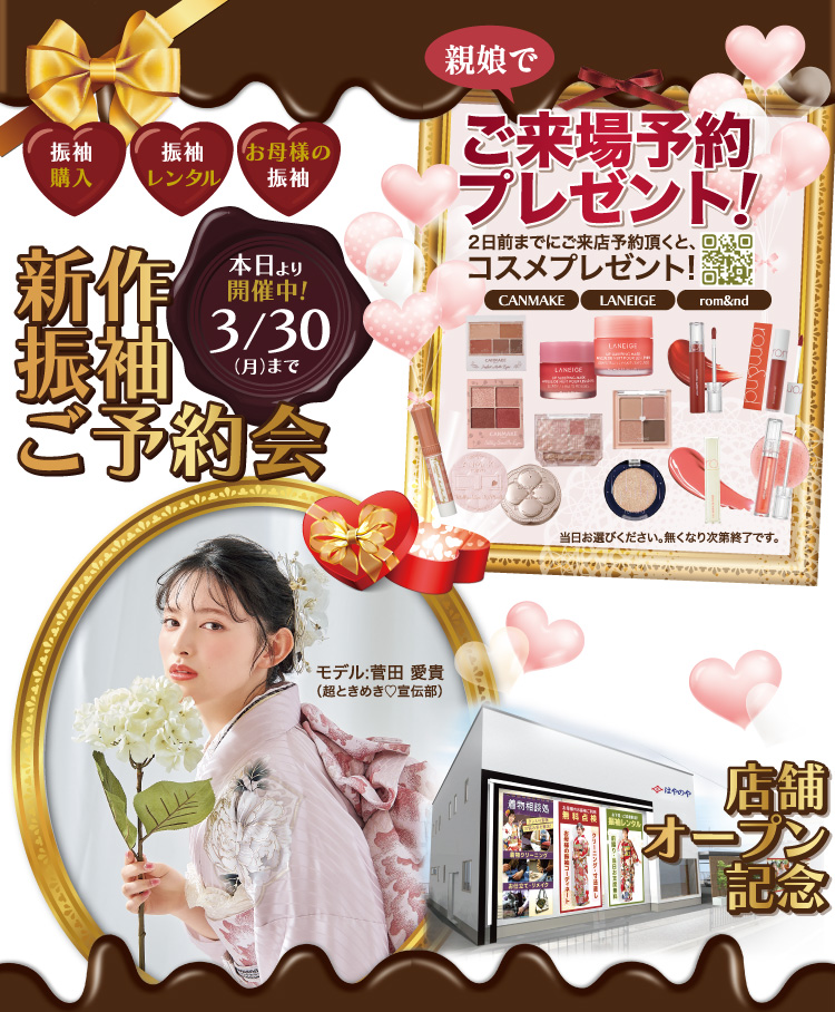 兵庫県姫路市、太子町、高砂市の成人式振袖レンタルとママ振袖のお下見会、振袖フェアー開催
