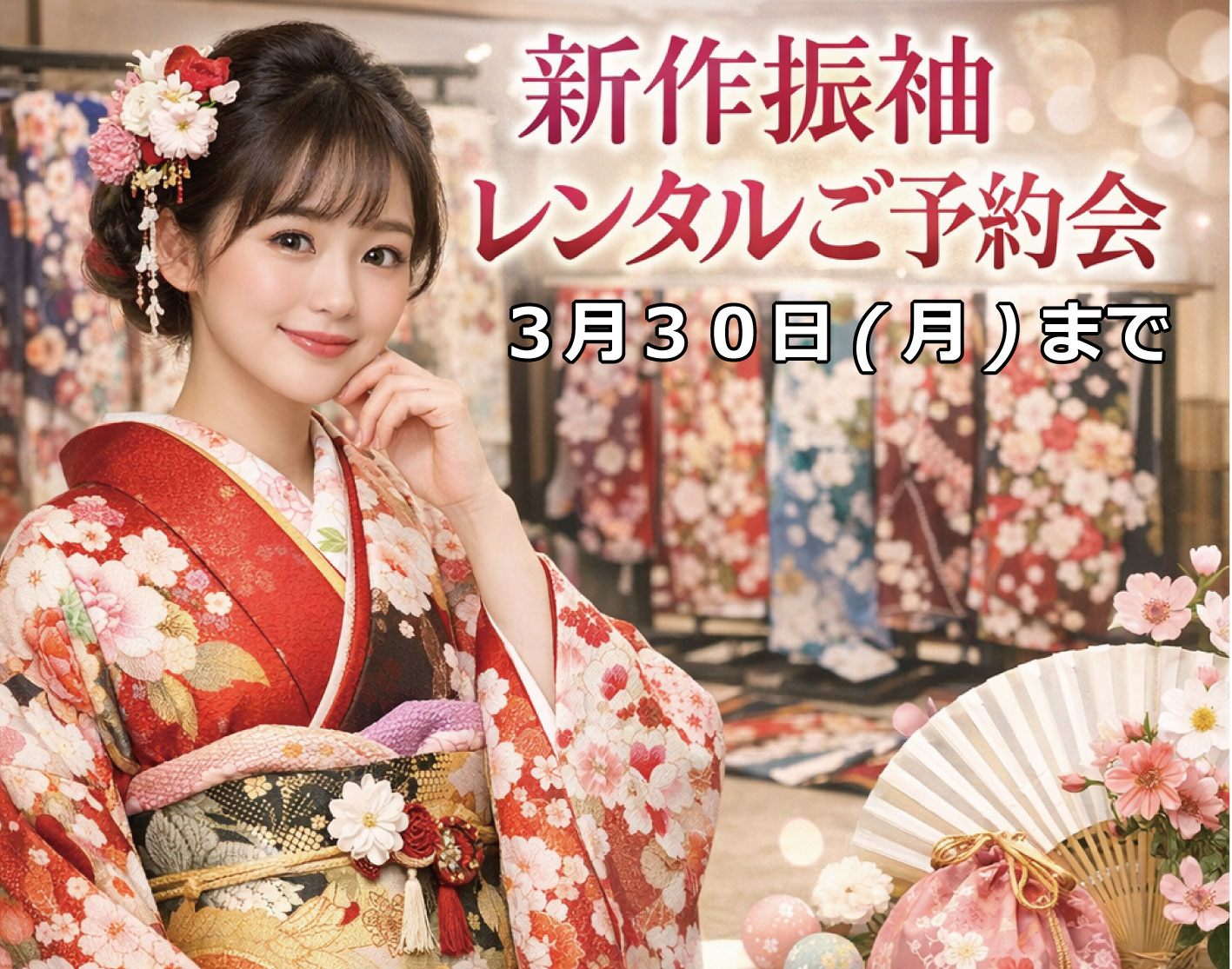 人気の振袖レンタルを予約するなら、今がチャンス!イベントの詳細は、こちら